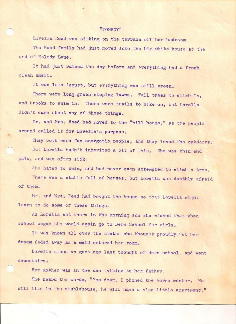 Page one of "Tomboy", Serra Elementary School, Sunnyvale, California, Creative Writing, 1962